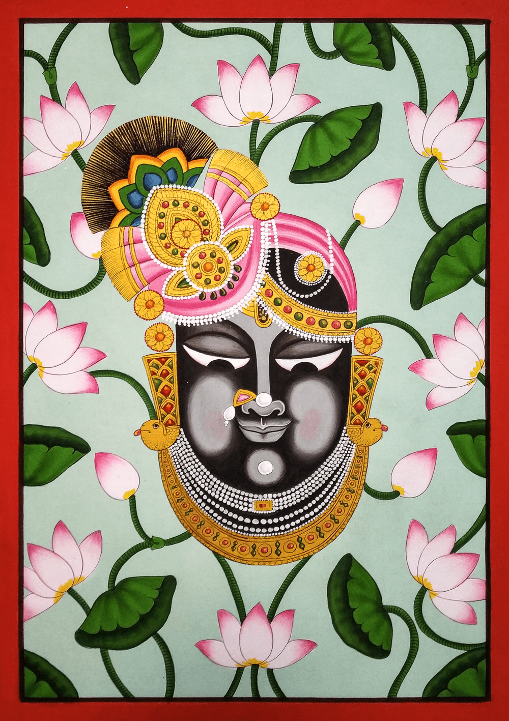 Pichwai paintings are completely made from natural things like flowers, cotton, and precious stones which makes them even more unique and special. Even the brushes used for its painting were made with horsetail hairs or goat hairs.