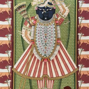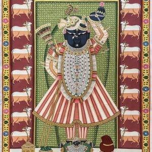 With this alluring Krishna Pichwai painting, let your walls shines mysteriously beautiful. You get a matte finish with highly good quality and sharp reflection. Just hang it on your living room and give yourself a different feel.